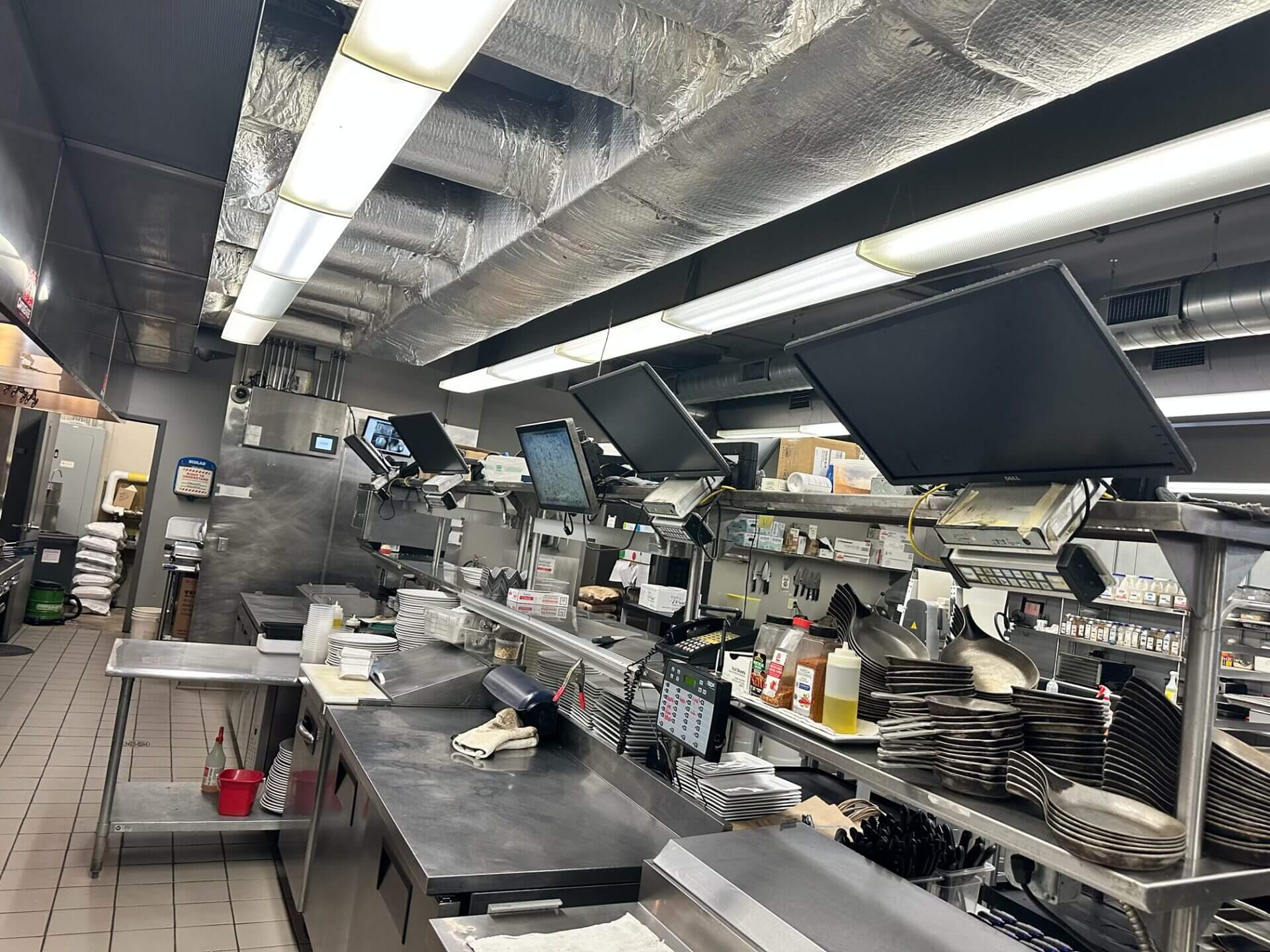 – The NCR system routed tickets to the appropriate KDS monitors, expo stations, and printers.