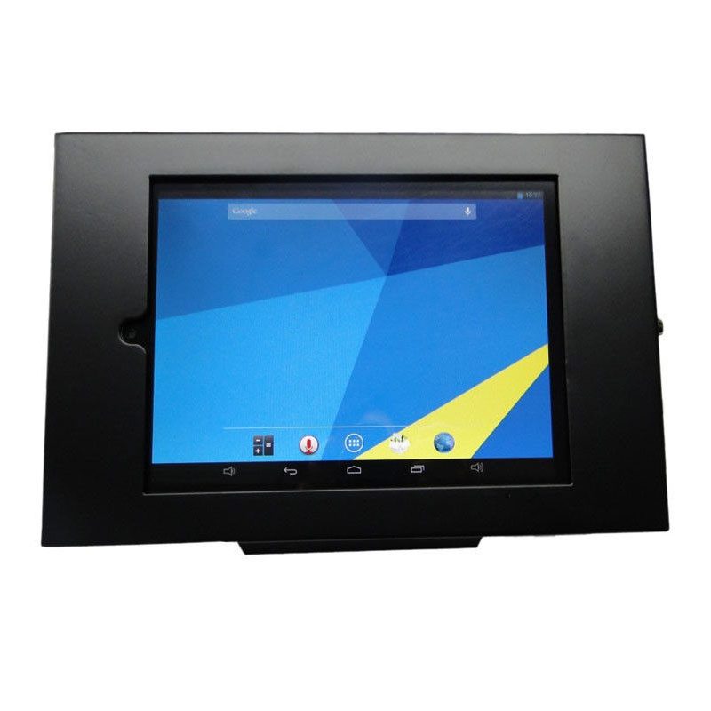 The 9.7″ Desktop Style Secure Enclosure is constructed with radio-transparent, heavy-duty cold-rolled steel with a powder-coated finish. This allows for all the wireless signals Wi-Fi, Bluetooth, and 3G radio, etc to be received and transmitted unimpeded. The 9.7″ Desktop Style Secure Enclosure also supports a pin-hole for a tablet camera.