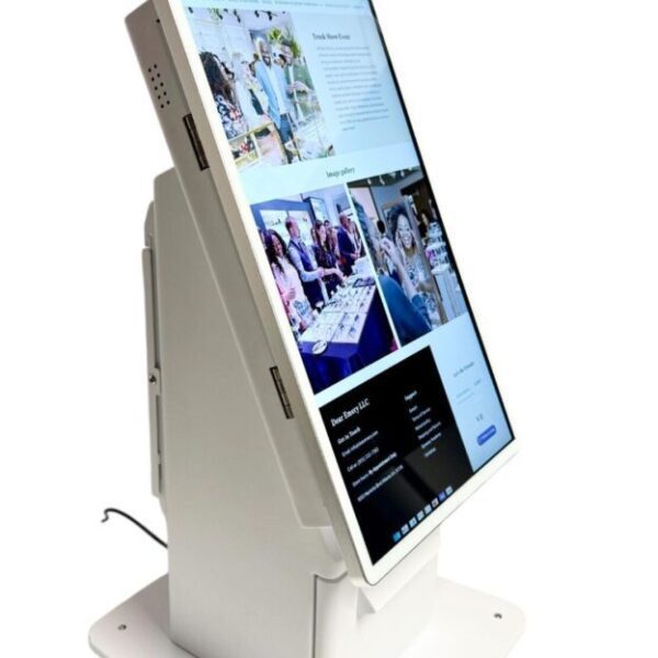 Supports Google Play Store. SDK is available for integrations. The model supports Android 11 with 4GB/32GB CPU configuration. The 24-inch self-service payment kiosk does not come with a payment terminal/pin pad. However, we can provide holder support for various payment terminals such as Verifone P400 credit card reader and others.