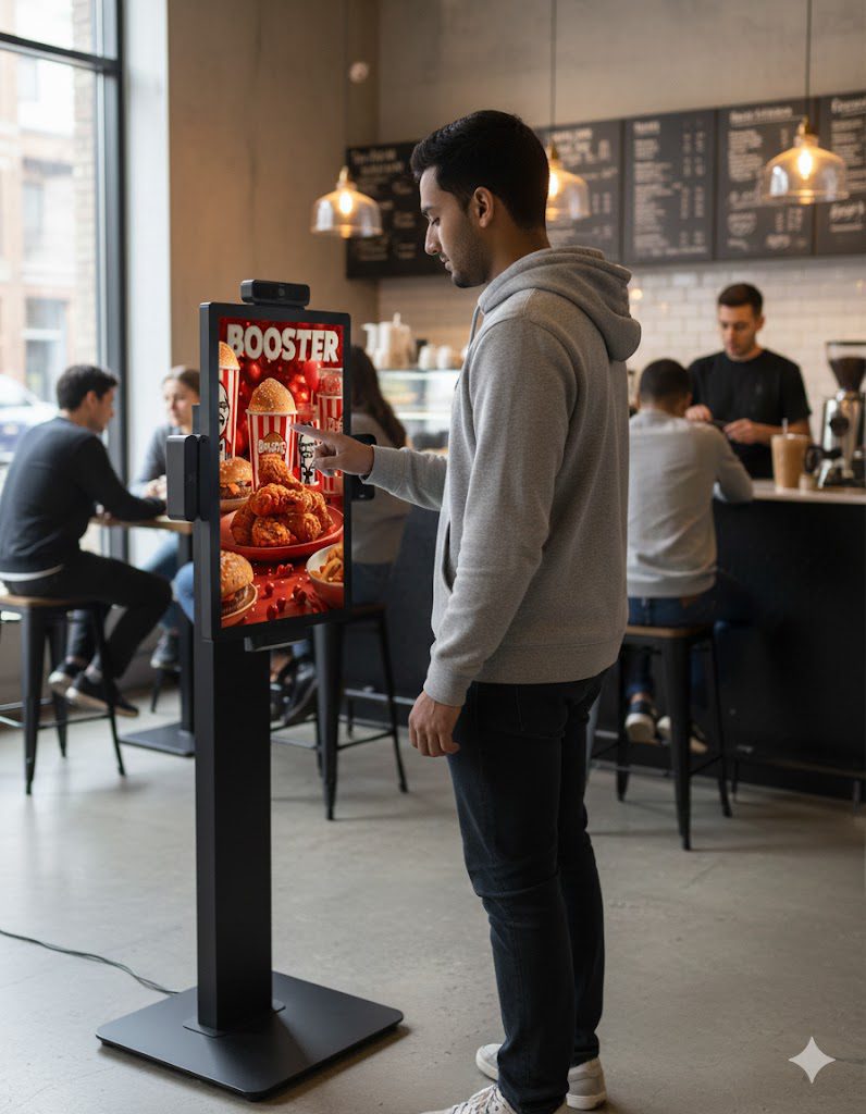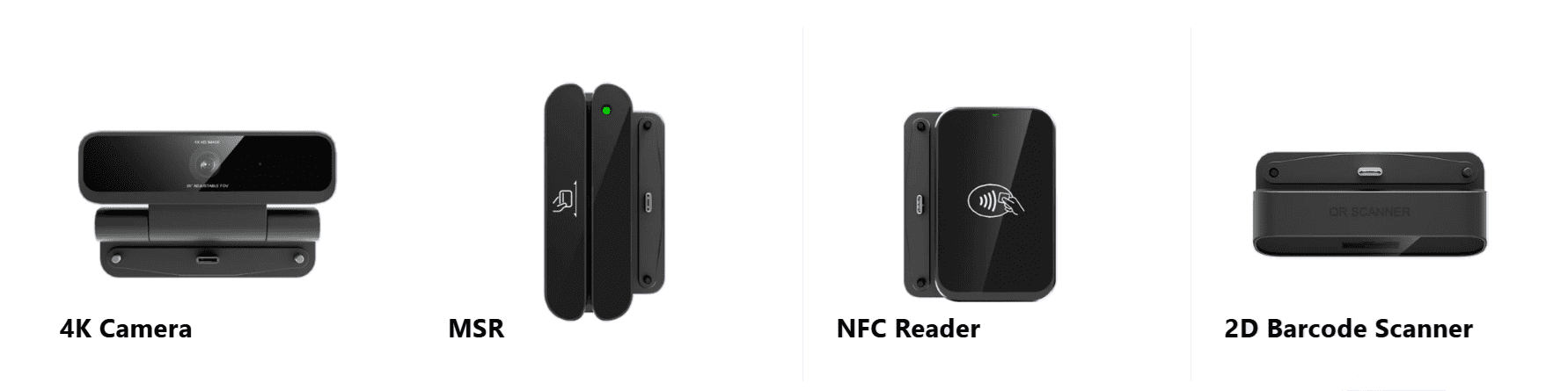This Smart POS Self Service Ordering Kiosk can be mounted on a desktop or Wall mounted using any commercially available VESA mount. Modular design with plug and play peripherals such as MSR, NFC payment terminal and video camera.