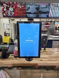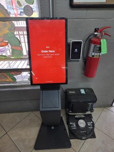 Digital kiosk with payment terminal attached.